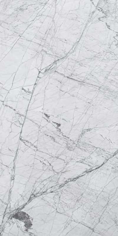 رنگ و طرح:زمینه سفید درخشان و رگههایی مشکی و طوسی که به صورت پراکنده و نامنظم در سطح سنگ مشاهده میشوند